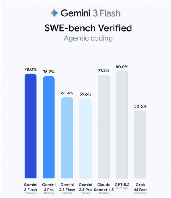 该模型在多项测试中表现卓越,甚至超越同系旗舰——SWE-bench得分78%略超Gemini 3 Pro的76.2%,成为Flash系列首次同期超越Pro型号的案例。