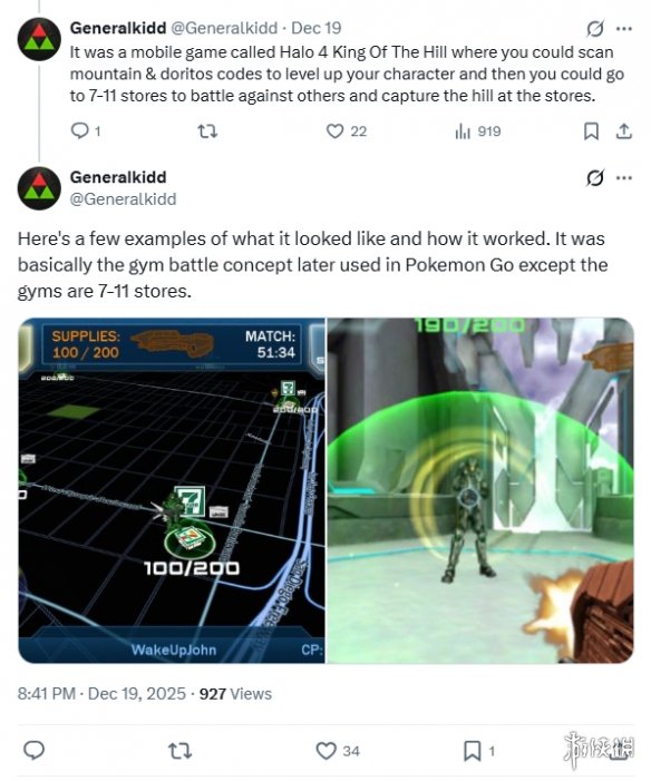 此外,GeneralKidd还提到了另一个鲜为人知的《光环》项目,不过这个项目从未正式发布过。这是一个与《精灵宝可梦Go》风格类似的概念项目,与《光环4》相关联,还涉及7-11便利店、多力多滋(Doritos)薯片和激浪(Mountain Dew)有联动合作?