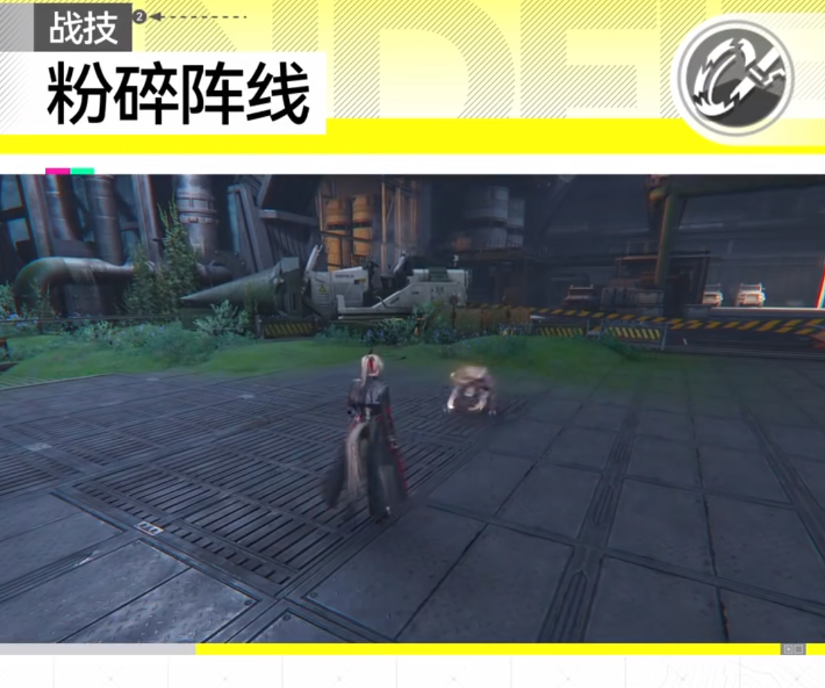 战技粉碎阵线,可以对处于正前方范围的敌人进行两次斩击,对敌人造成大量伤害,还会施加碎甲效果,可以增加敌人受到的物理伤害。