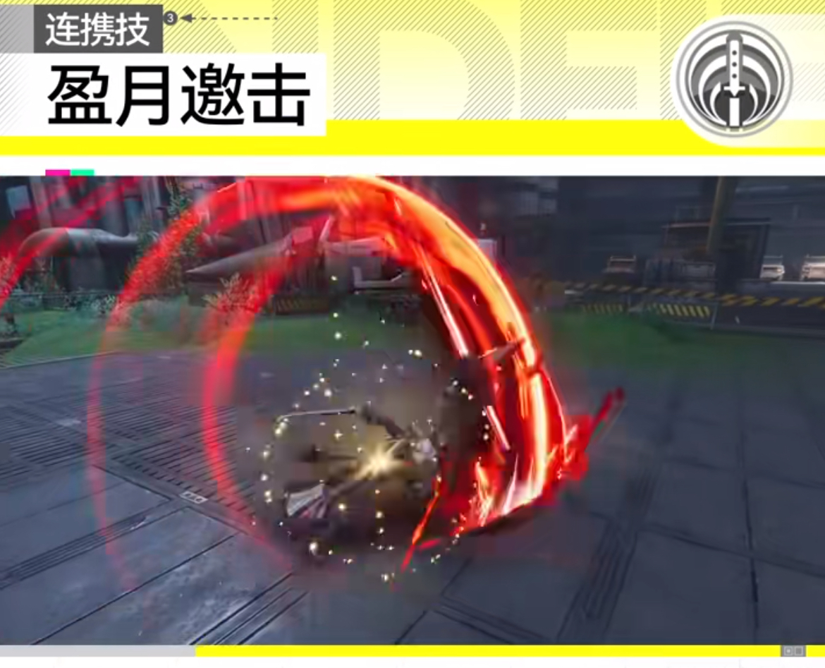 连携技盈月邀击,当敌人被物理效果消耗破防层数的时候就可以触发该技能。根据对方消耗的破防层数进行相同次数的斩击效果,给对方造成一定的伤害值,同时恢复一定的技力。