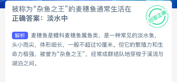 以上就是被称为“杂鱼之王”的麦穗鱼通常生活在?神奇海洋今天答案最新2025年10月25日分享,更多相关攻略内容,请点击关注39闲玩网更新!
