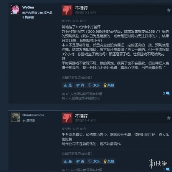 此外,部分玩家对游戏的定价策略提出批评,指出其预购价为300元,发售后却下调至268元,此举引发“首发用户权益受损”争议,并导致部分玩家遭遇退款流程不畅的问题。