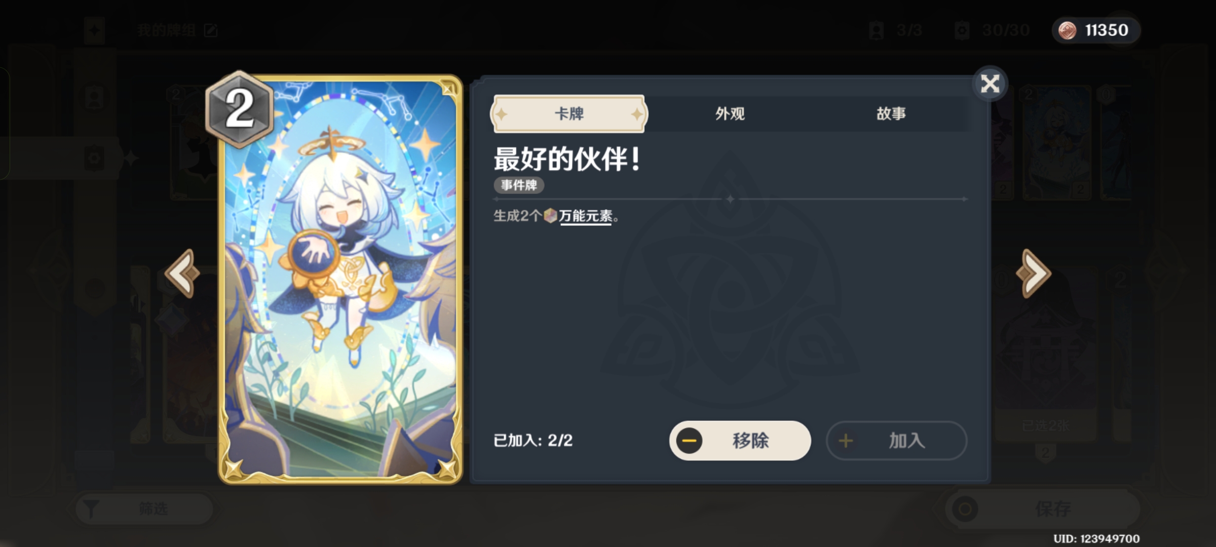 记得带这个,可以给三个万能元素多找行动牌为1和0的。