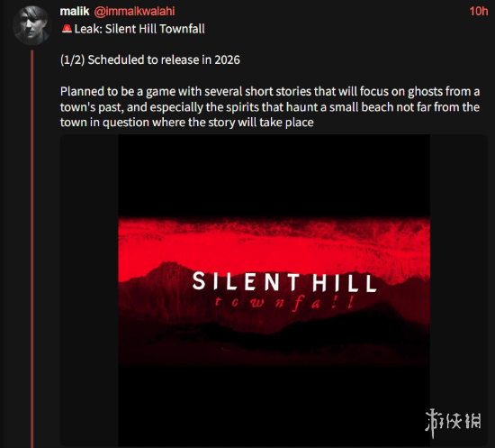 《寂静岭》系列新企划《寂静岭:townfall》在2022年当时正式公开,由科乐美、Annapurna以及曾制作《Stories Untold》的No Code工作室合作共同开发。现据外媒playground消息,在外网社交媒体上一个ID为@immalkwalahi的推主日前透露,《寂静岭:townfall》将于2026年发售,并且登陆PC、PS5和Xbox Series X/S等平台。