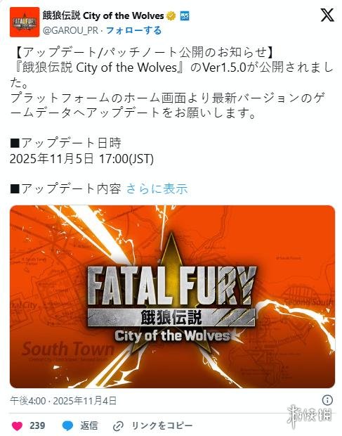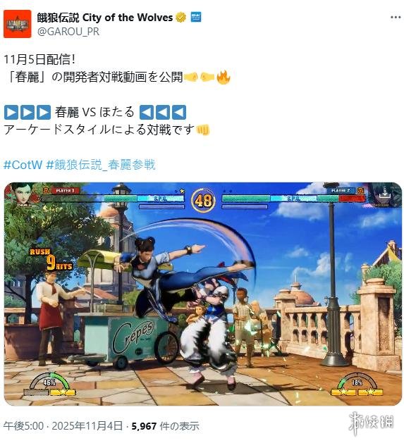 本作官方社交X账号于11月3日宣布,《街头霸王》联动DLC角色春丽将于11月5日上线。随后在11月4日公开了同步发布的Ver.1.5.0补丁说明,并确认具体更新时间为11月5日16时。