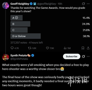 那么,既然今年都这么“拉胯”了,明年我们还会看TGA吗?——答:骂归骂,但该看还得看!因为TGA早已超越了一场简单的颁奖,它更像是全球玩家的游戏“春晚”:新作预告片的惊喜、行业动向的披露,以及一些出人意料的“惊喜”,共同构成了这场盛事无法替代的吸引力。