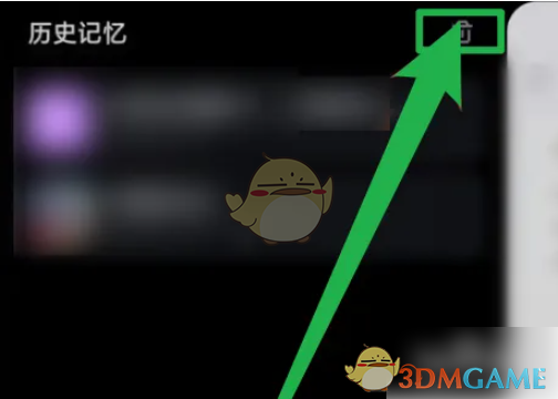 2、跳转到【历史记忆】页面后,点击垃圾桶符号