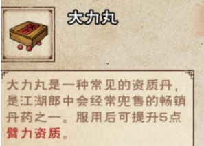 效果:能够增加5点臂力资质[每位角色仅限服300粒]。