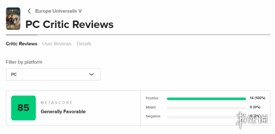 《欧陆风云5》媒体评分解禁,Metacritic均分85。全部14家媒体均给予好评,无中评与差评。