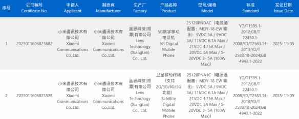 其中,2512BPNDAC是普通版,25128PNA1C则为双卫星通信版本,支持天通一号和北斗短报文。两款机型均配备UWB天线,未来可能成为小米所有旗舰机型的标配,用于实现更便捷精准的汽车解锁功能。