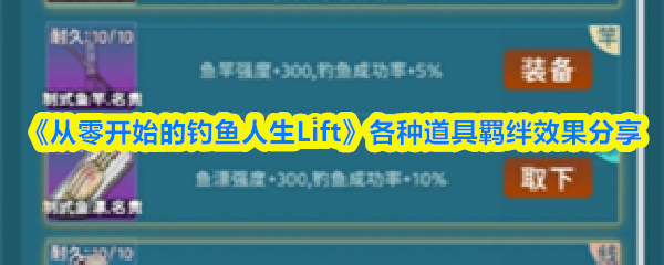从零开始的钓鱼人生Lift游戏里玩家可以体验到钓鱼的乐趣,还会有各种各样的道具来增加各种鱼类的获取概率,这些道具都有独特的羁绊效果,以下是《从零开始的钓鱼人生Lift》各种道具羁绊效果分享。