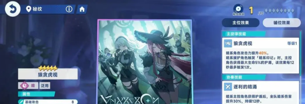 协奏技能就需要条件,必须要收集足够的音符。在满足之后就可以激活,狼贪虎视的协奏技能就是逐利的暗涌。一旦暗系主控角色在拿到护盾之后,那全队的暗系伤害都可以提升30%,并且还会持续12秒的时间。无论是主要位置还是辅助位置,都会有主位效果以及辅位效果。暗系援护角色一旦在触发暗系印记之后,那主控的角色就可以获得最大生命5%的护盾。每相隔12秒的时间就可以触发一次,这一点还是很有优势的,如果你可以把它放在辅助位置,那么就可以靠援助角色,然后去叠加护盾,一整套下来战斗力就可以直接翻倍。