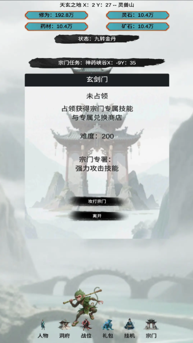 每个宗门都有自己的技能,获得其他宗门技能,可以攻打宗门,成功以后。