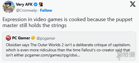 Douse在社交平台发文称:"电子游戏的艺术表达已陷入困境,因为牵线木偶的提线始终掌握在操纵者手中。"这条被解读为回应Adler声明的帖文获得玩家广泛认同,有人留言感叹:"为这家工作室感到惋惜,他们正在妥协游戏的核心灵魂。"