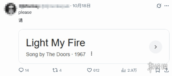 值得一提的是,有玩家经过深入分析后认为,这条推文中其实暗藏了音乐彩蛋。他们觉得门形表情可能是在暗指The Doors乐队的经典曲目《Light My Fire》,这种谐音上的关联进一步强化了与《无火之光》之间潜在的关联。