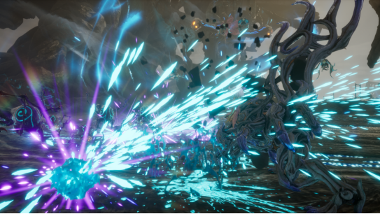《IZON.》的核心玩法围绕“虚人”与“智人”的协同操作展开。玩家主要操控“虚人”进行战斗,他可以使用双手发动华丽连击、枪械射击和强力的光束火炮攻击击退敌人。