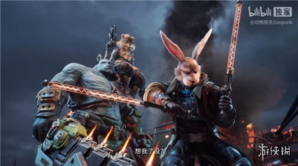 多角色协同作战是另一个值得关注的点。PV实机演示里能看到多角色切换的战斗场景,每个角色的战斗风格差异显著,兔子老雷的双鞭适合灵活游走和范围攻击,犀牛老白的链锯大刀主打力量碾压,花栗鼠翠杉则走敏捷的远程射击路线。从展示的内容来看这套机制已经有了比较完整的雏形。