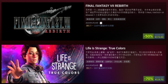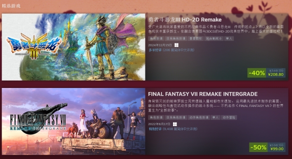 此次参与“黑五”的游戏也是涵盖了SE社旗下多个知名游戏系列,包括《最终幻想7》重制版系列、《勇者斗恶龙》重制版系列、《王国之心》系列、《奇异人生》系列等等。