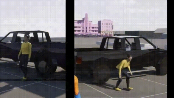 视频中特别指出,自行车动画是为玩家设计,而卡车跳跃动画则为NPC使用,因此后者的角色并非游戏中的女主角露西娅。