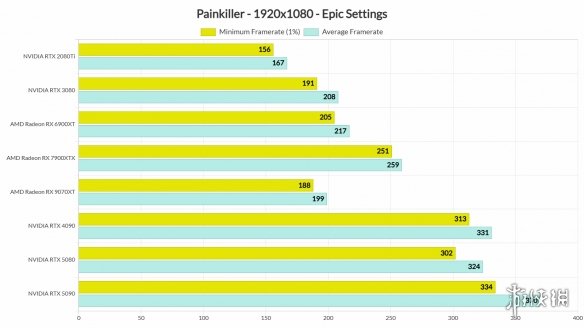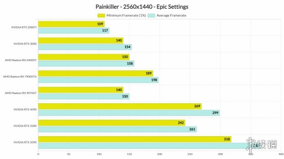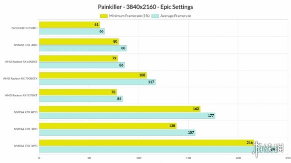 游戏性能运行表现方面,主要受GPU限制但流畅运行:1080p“Epic”画质下全显卡超120FPS(RTX 2080Ti达150FPS);1440p超100FPS;4K超60FPS(RTX 2080Ti亦稳定)。但RX 9070XT表现异常,跑分低于RX 6900XT,疑为驱动问题。