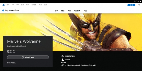近日,PS第一方3A大作《漫威金刚狼》上架PS Store,商店界面标注了“离线游玩已启动”、“1位玩家”、“PS5版本支持震动功能和扳机效果(DualSense无线控制器)”等信息。