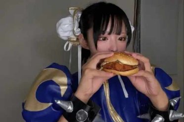 美女Coser神还原《街头霸王》春丽 连吃汉堡都复刻!