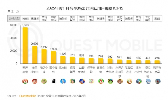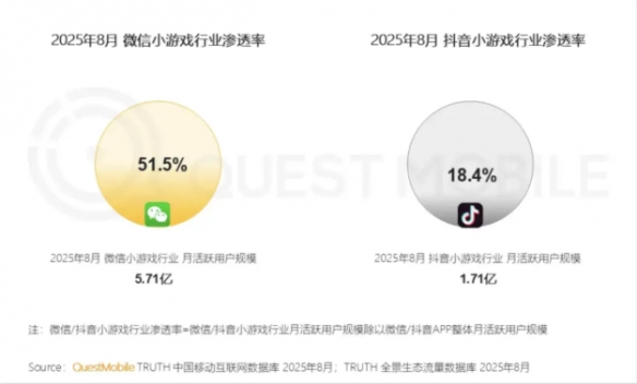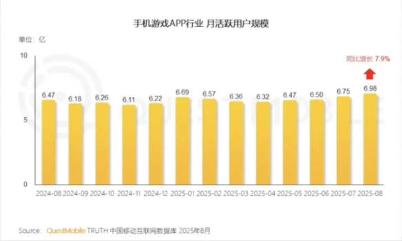 第三方数据机构QuestMobile于10月21日发布《2025手机游戏行业发展分析报告》,数据显示截至今年8月,国内手游月活跃用户规模攀升至6.98亿,创近一年新高。其中手游与小游戏用户重合规模达3.5亿,"双端并行"已成为行业新常态。微信小游戏以5.71亿月活占据领先地位,抖音小游戏则以1.71亿月活紧随其后,形成互补生态。