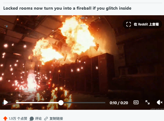 近日发布的修复方案可谓将"热修复"贯彻到底:当玩家未使用钥匙卡却强行穿越上锁门扉获取宝藏时,会发现瞬间陷入四面火海的绝境。根据Reddit平台记录的画面,墙体喷涌的烈焰虽不伤及战利品分毫,却让投机者瞬间化作焦尸,在早已遍布弹孔与爆炸痕迹的战场上再添一具燃烧的躯壳。