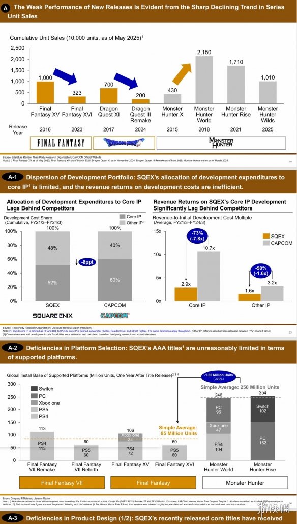 在近日一份流出的针对Square Enix(SE)的投资分析报告中,一组令人咋舌的数据在玩家社区引发了地震。SE的大股东3D Investment Partners为了鞭策这家挥金如土的老牌大厂,直接将隔壁卡普空的《怪物猎人:崛起》搬出来当教科书“骑脸输出”。