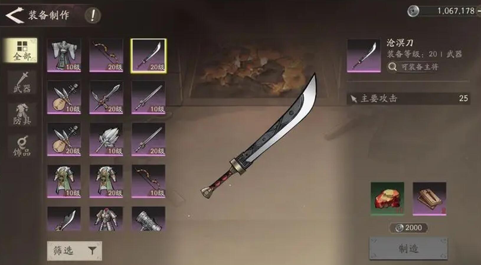 锻造材料主要有三类:锻造书(主线关卡掉落、市曹每日5000铜币/本)、矿石(精铁——黄巾试炼普通、乌金——日月之行精英、玄铁——市曹周限购10个)、特殊材料(淬火剂——分解紫装、锻造锤——签到7天)。玄铁是个非常特殊的材料,也是装备打造主要的卡点,前期切记乱用,留着打造40级以上装备性价比最高。