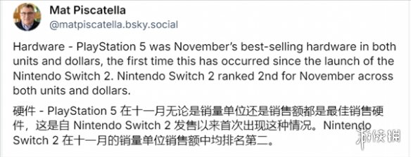 Mat Piscatella同时表示,对于Switch2销量的下滑情况,不应过度解读。实际上,从相关追踪记录来看,Switch2依旧是销售速度最快的游戏主机。