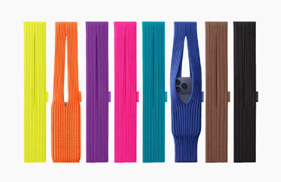 官方强调,这款配件“以美妙方式将iPhone随身穿戴”。在拉伸时,织物微微透出内部物品,方便用户查看iPhone屏幕。它不仅可以手持,还能系在包上,或直接佩戴在身上。
