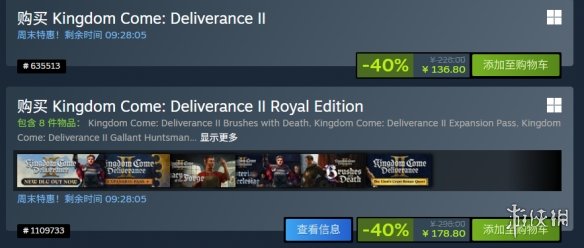 《天国:拯救2(Kingdom Come: Deliverance II)》已在Steam平台开启新史低促销,标准版4折后仅需136.8元,豪华版4折后仅需178.8元,优惠活动将在今天截止,感兴趣的玩家记得抓紧时间购买。