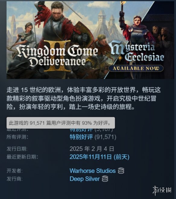 3.《天国:拯救2》Steam新史低!还剩一天抓紧时间买