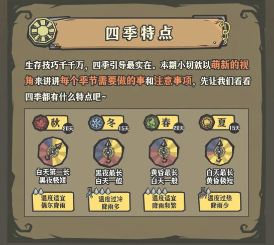 《饥困荒野》中,四季轮转各具特色与挑战,深刻影响着玩家的生存策略。为应对不同季节的潜在危机,玩家需提前规划。下面给大家带来了饥困荒野四季生存手册,包含每个季节需要做和注意的事项介绍!