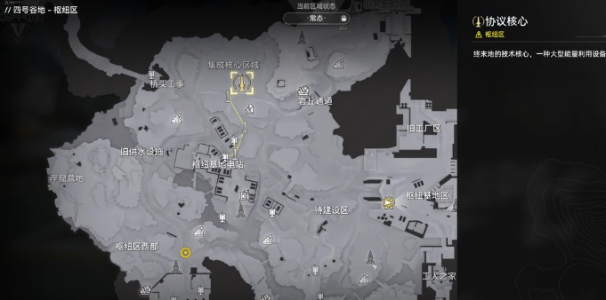 所有电力的源头就在协议核心,这就是基地的总电源。所有的店全部都是从这边来,那店怎么样才能够传到远处呢?就需要靠中继器。这就好像是电力中转站一样,负责把电直接传送到地图的各个角落,不过这并不是随便放的,而是有限制。有距离的限制大概是每80米就应该放一个,否则的话电力根本就传不过去。在地图上大家可以看到有许多的黄线,这其实就是拉好的黄线,跟着走就可以知道电力覆盖在什么地方。