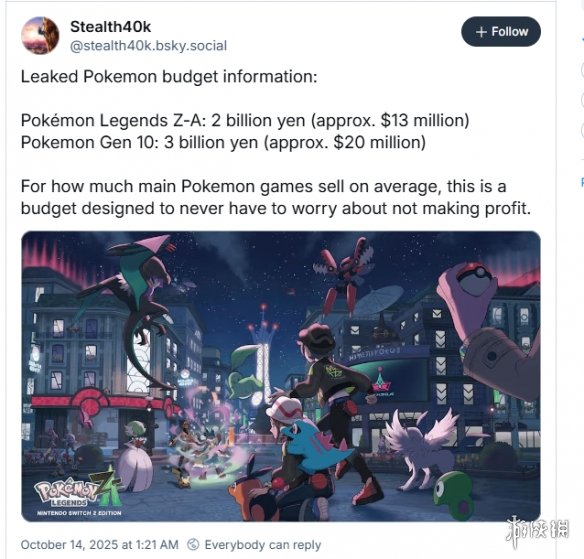 最新披露表明,即将推出的《宝可梦传说 Z-A》开发预算仅为1300万美元,第十代正统续作的预算也只有2000万美元。若系列历史作品均维持相近成本水平,按《宝可梦:朱/紫》累计销量超2500万份、《宝可梦:剑/盾》同等销量表现估算,单作营收均突破10亿美元,即便计入营销与分销成本,净利润仍可接近百亿规模。