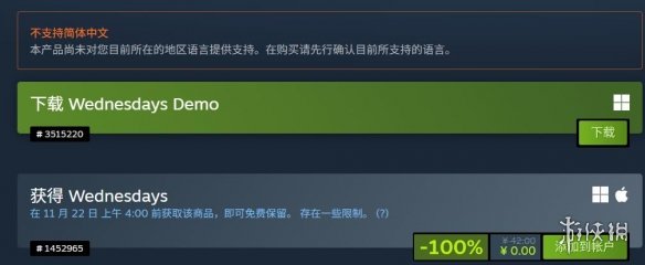 今日(11月20日,世界儿童日),Steam平台可免费领取一款视觉小说游戏《星期三(Wednesdays)》,原价42元,领取活动截止11月22日。本作Steam评价“特别好评”,好评率89%。