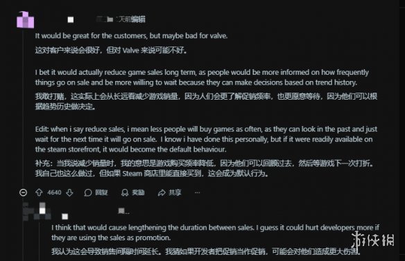 通常情况下,如果不借助第三方软件,Steam平台是无法查看游戏历史价格的。近日,国外知名玩家社区Reddit上关于Steam是否应在商店页面添加价格历史记录的讨论引发广泛关注。