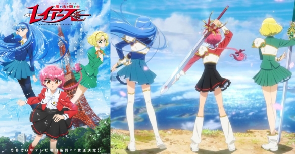 今日,官方正式宣布《魔法骑士雷阿斯》新作动画预计于2026年播出,并同步公开首张前导视觉图。图中描绘了狮堂光、龙咲海、凤凰寺风三位少女站在东京铁塔前的身影,象征她们即将迎来的命运转折。