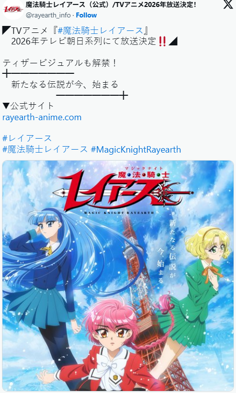 由漫画家团队CLAMP创作的经典作品《魔法骑士雷阿斯》(魔法騎士レイアース),在去年迎来问世30周年之际,宣布启动新动画企划。