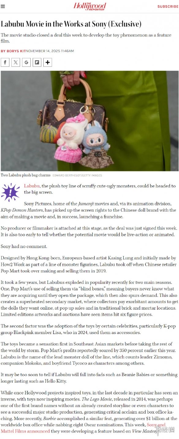 第二个因素是某些名人对这些玩具的采用,尤其是韩国流行音乐组合Blackpink的成员Lisa,她在2024年曾将它们用作配饰。