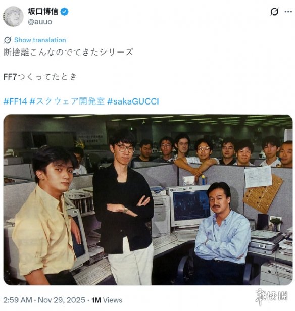 近日,知名游戏制作人坂口博信通过社交媒体发布了《最终幻想7》开发团队的幕后照片。从画面中的设备与呈现的风格来看,充满了浓厚的90年代制作氛围。