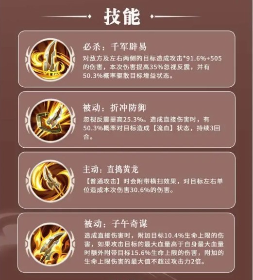【优势】攻击生命血量高的辅助类武将时伤害特别高。