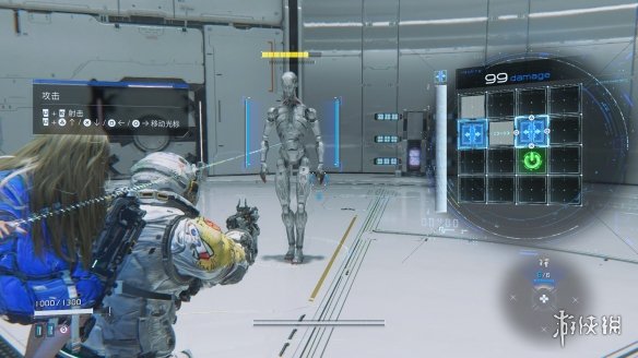 有趣的是,在戴安娜入侵的过程中,玩家依旧可以按下R1让休闪避,也可以按下R2对敌人进行射击。当然,这并没有必要,玩家完全可以在走完格子后进行射击,加上休的默认枪械在DEMO中子弹上限是6枚,子弹会自己缓慢恢复。
