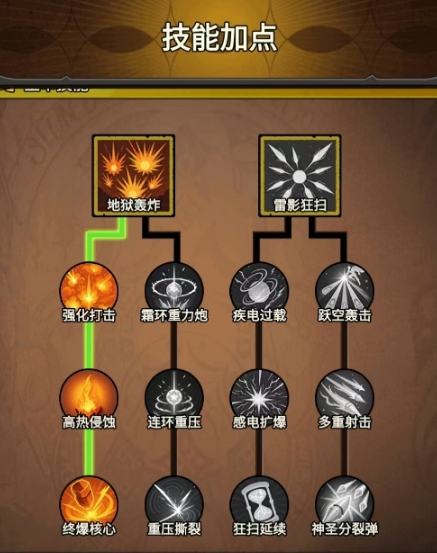 以毒爆溅射、剧毒弹头为技能核心的流派,在伤害输出方式上以普攻为主、技能为辅,搭配上幽绿魅影套所带来的毒蚀元素伤害提升效果和毒蚀类技能伤害倍率加成,使得角色每次进行普攻时,都能打出非常夸张的毒蚀伤害。而且该流派只需点出剧毒弹头,就能让角色在前期具备很强的战斗力,特别适合开荒,后续还能通过武器和符文搭配再次提高毒蚀伤害的上限,装备迭代也极为平滑,若各位想让自己的枪炮师以一个极为平稳的方式过渡到后期,可选择此流派。