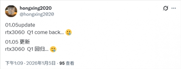 根据数码博主@hongxing2020的最新消息,NVIDIA已向合作伙伴通报,将于2026年第一季度重启RTX3060显卡的生产。