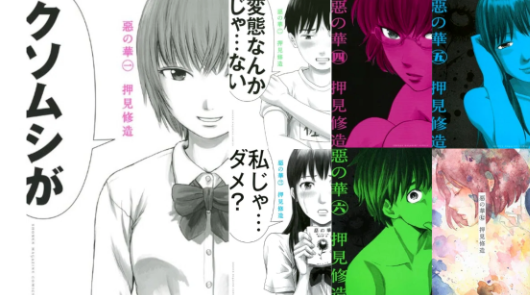 《恶之华》自2009年10月起在讲谈社《别册少年Magazine》连载,至2014年完结,共发行单行本11卷。故事讲述性格软弱的主角春日高男,沉迷于法国诗人波德莱尔的诗集《恶之华》。一天,他阴差阳错地拿走了暗恋对象佐伯奈奈子的运动服,整个过程却被同班同学仲村佐和目睹。仲村借此胁迫春日与她订立“契约”,并屡次强迫他做出各种怪异行为。这一关系却在同时拉近了春日与佐伯之间的距离,一段围绕三人的扭曲青春故事就此展开。