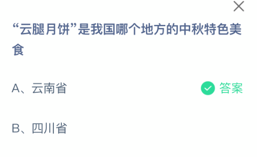 1、题目:“云腿月饼”是我国哪个地方的中秋特色美食?