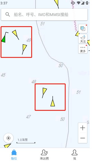 2、放大到一定程度后,在地图上就可以看到当前海域上的船舶了。